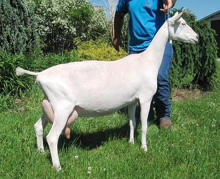 She was level and deep bodied with a beautiful set to her rear legs, and her feet and pasterns were strong to the very end, her very capacious mammary still well attached, both fore and rear. This is a doe that never disappointed, only improving over time with the will to milk and a favorite in the barn.
